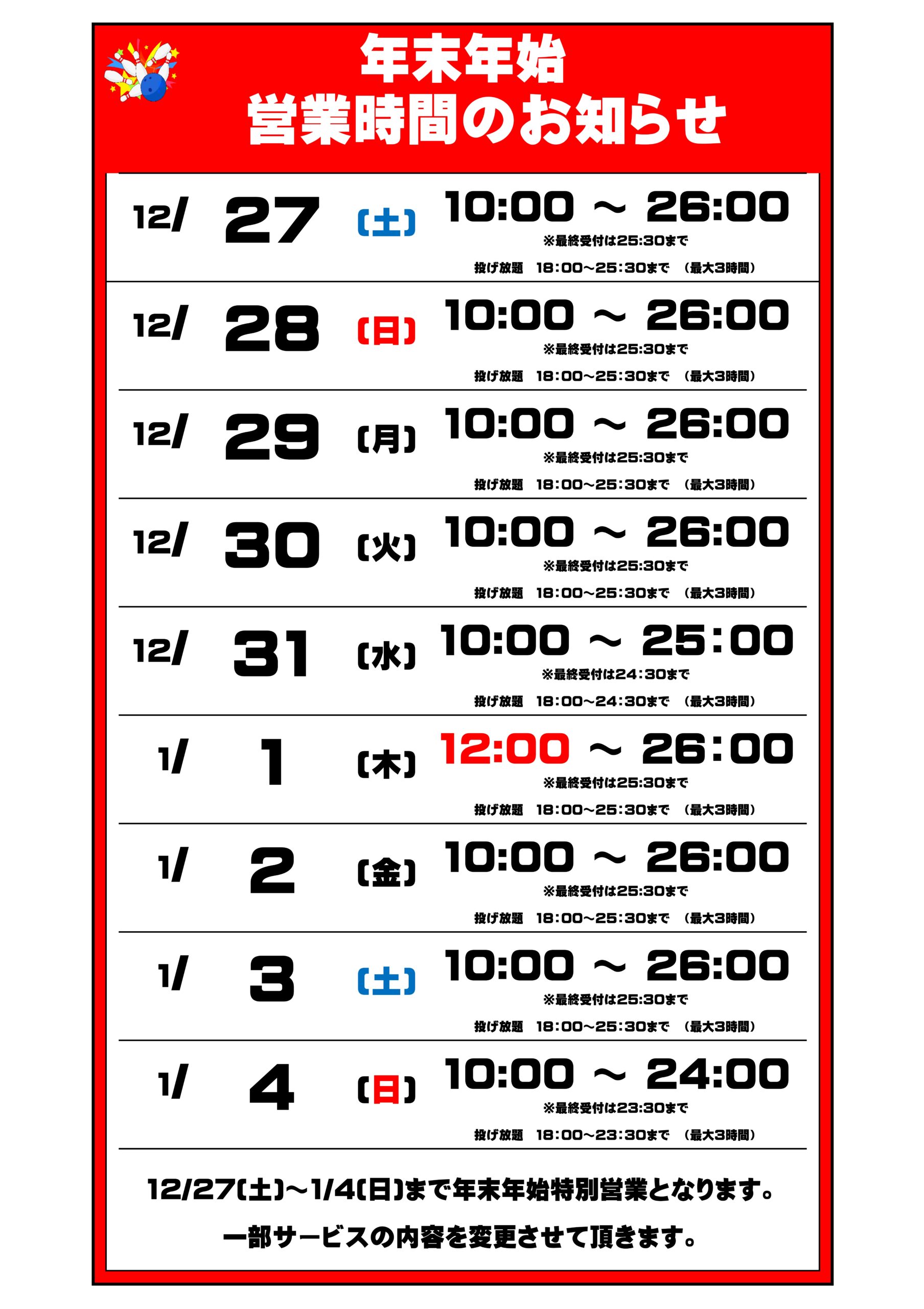年末年始営業のおしらせ!