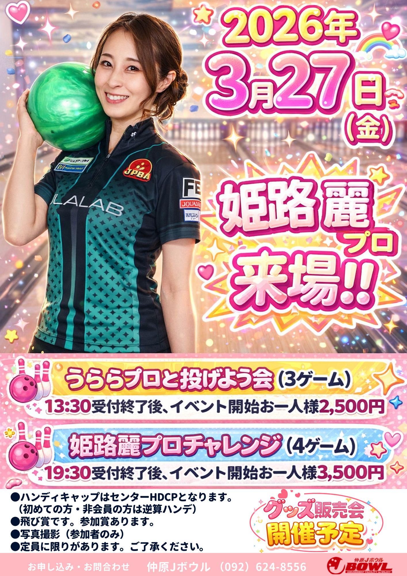 2026年3月27日(金)13:30~/19:30~姫路麗プロが来場されます。ただいまエントリー受付中です。